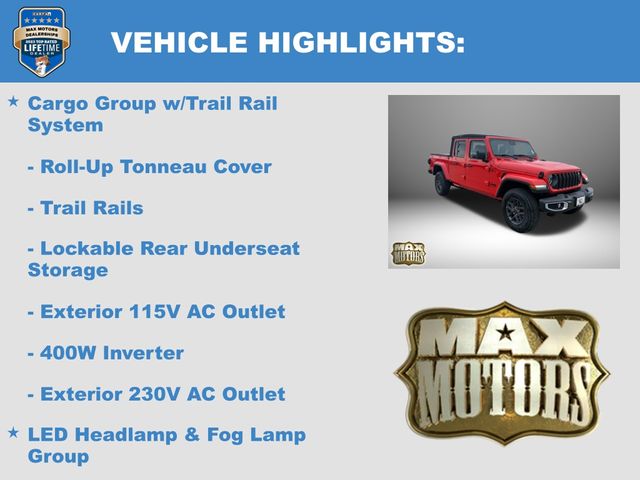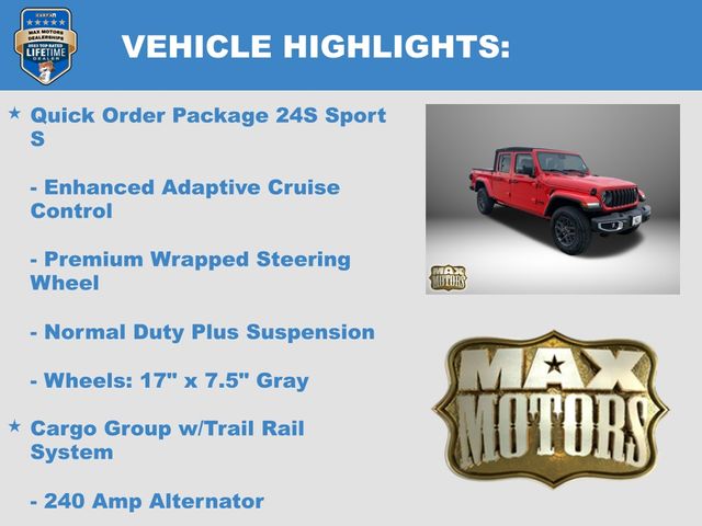 115V Auxiliary Power Outlet, 12.3" Touchscreen Display, 240 Amp Alternator, 400W Inverter, 4G LTE Wi-Fi Hot Spot, Advanced Brake Assist, Air Conditioning w/Auto Temperature Control, Alexa Built-In, Alpine Premium Audio System, Apple CarPlay, Auto High Beam Headlamp Control, Auto-Dimming Rear-View Mirror, Automatic Headlamps, Blind Spot & Cross Path Detection, Bluetooth Wireless Speaker, Body Color Fender Flares (2-Piece), Cargo Group w/Trail Rail System, Cluster 7.0" TFT Color Display, Connected Travel & Traffic Services, Connectivity - US/Canada, Convenience Group, Corning Gorilla Glass, Daytime Running Lamp System, Daytime Running Lamps LED Accents, Deep Tint Sunscreen Windows, Emergency Vehicle Alert System (EVAS), Emergency/Assistance Call, Enhanced Adaptive Cruise Control, Exterior 115V AC Outlet, For Details, Visit DriveUconnect.com, Front 1-Touch Down Power Windows, Front Door Locks 2-Door Passive Entry, Front LED Fog Lamps, Full Speed Forward Collision Warning Plus, Google Android Auto, GPS Antenna Input, GPS Navigation, HD Radio, Heated Front Seats, Heated Steering Wheel, Integrated Voice Command w/Bluetooth, LED Headlamp & Fog Lamp Group, LED Premium Reflector Headlamps, LED Taillamps, Lockable Rear Underseat Storage, Media Hub w/2 Charge Only USBs, Normal Duty Plus Suspension, ParkSense Rear Park Assist System, Power Heated Mirrors, Power Tailgate Lock, Premium Wrapped Steering Wheel, Quick Order Package 24S Sport S, Radio: Uconnect 5 Nav w/12.3" Display, Remote Keyless Entry, Remote Start System, Roll-Up Tonneau Cover, Safety Group, Security Alarm, SiriusXM Radio Service, SiriusXM w/360L, Speed Sensitive Power Locks, Sun Visors w/Illuminated Vanity Mirrors, Technology Group, Trail Rails, Universal Garage Door Opener, USB Host Flip, Wheels: 17" x 7.5" Gray.