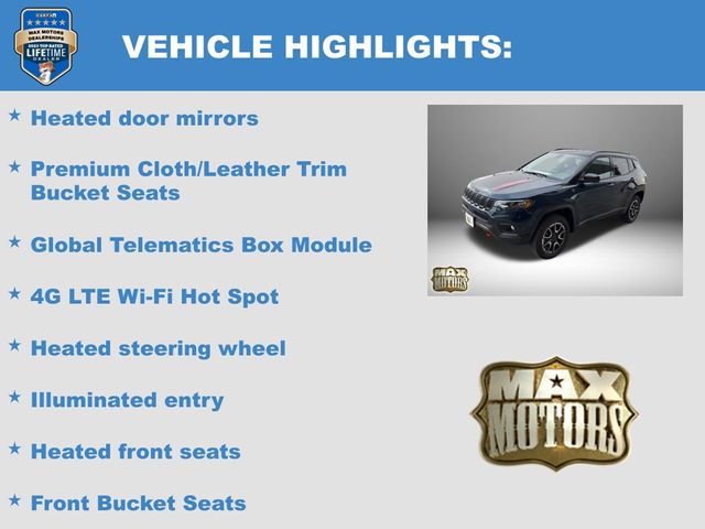 4WD, 4G LTE Wi-Fi Hot Spot, Bumpers: body-color, Front Bucket Seats, Global Telematics Box Module, Heated door mirrors, Heated front seats, Heated steering wheel, Illuminated entry, Low tire pressure warning, MyFlexCare Service Plan, Power driver seat, Power Liftgate, Premium Cloth/Leather Trim Bucket Seats, Quick Order Package 29E, Radio: Uconnect 5 with 10.1" Display, Rain sensing wipers, Remote keyless entry.