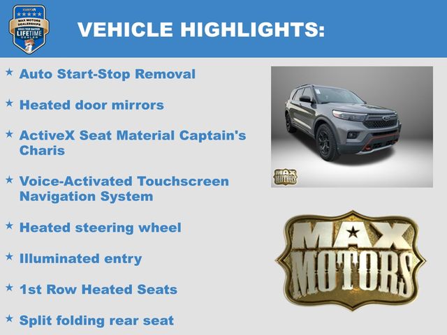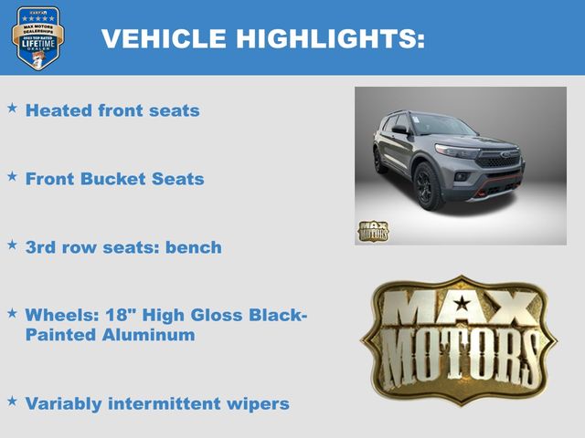 4WD, 1st Row Heated Seats, 3rd row seats: bench, ActiveX Seat Material Captain's Charis, Auto Start-Stop Removal, Front Bucket Seats, Fully automatic headlights, Heated door mirrors, Heated front seats, Heated steering wheel, Illuminated entry, Navigation System, Power Liftgate, Remote keyless entry, Speed control, Split folding rear seat, Steering wheel mounted audio controls, SYNC 3 Communications & Entertainment System, Twin Panel Moonroof, Variably intermittent wipers, Voice-Activated Touchscreen Navigation System, Wheels: 18" High Gloss Black-Painted Aluminum.